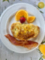 Imagine a slice of golden brioche french toast with a bonus...a delicately flavored almond filling finished off with Canadian maple syrup, zested orange and a dusting of powdered sugar if so desired. It's almost too good to be breakfast.